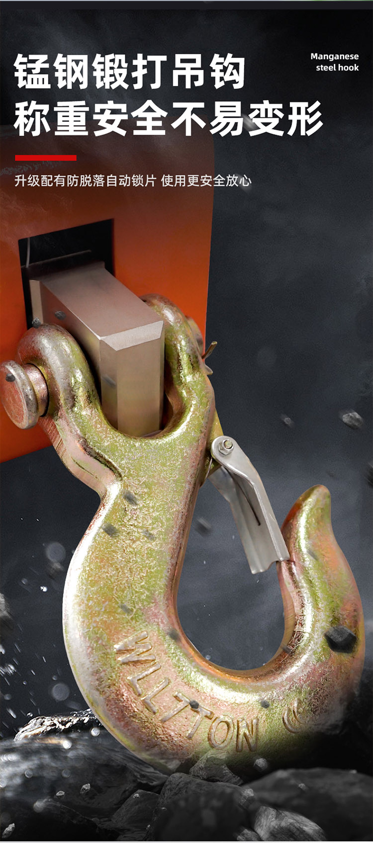 ● 錳鋼鍛打吊鉤,使用更安全放心;