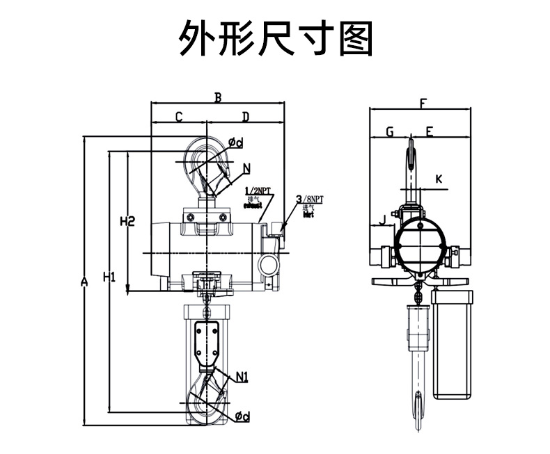 - 固定式 掛鉤款 0.5-5噸氣動葫蘆