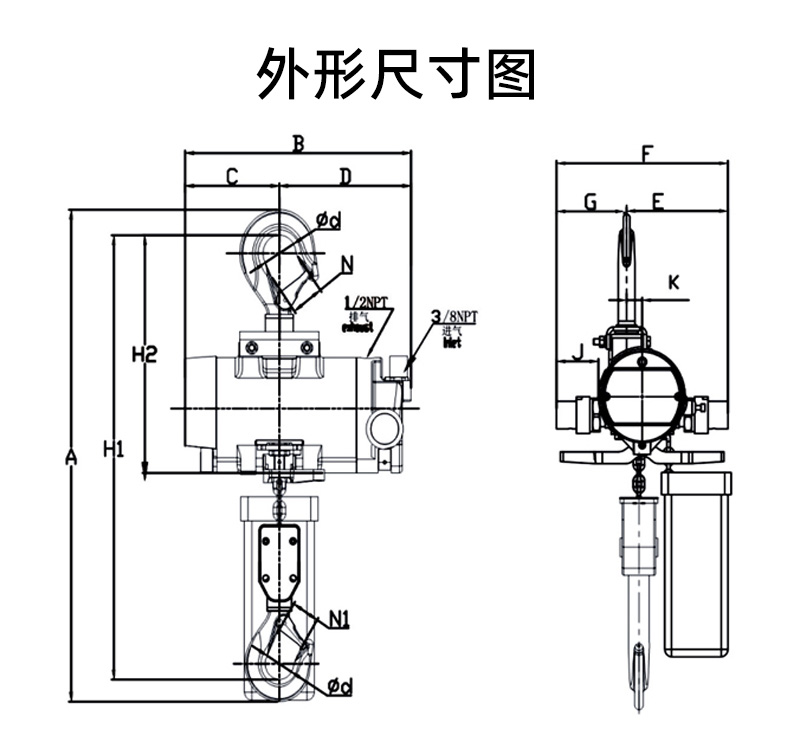 - 固定式 掛鉤款 50噸氣動(dòng)葫蘆