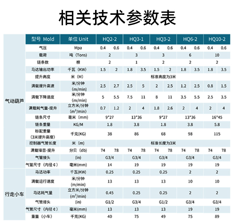 7.經久耐用,零件設計精細,氣動葫蘆使用壽命比傳統葫蘆使用壽命長