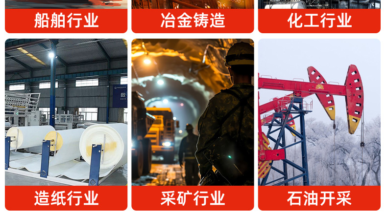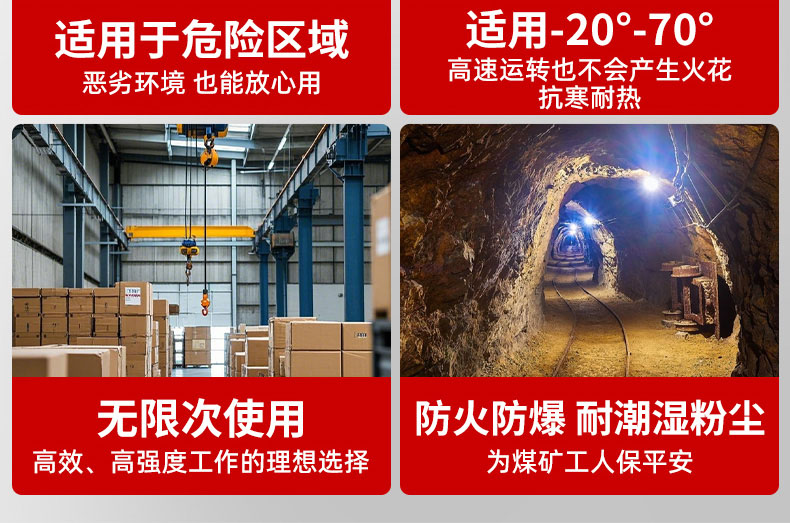 9.應用范圍廣,由于防爆性能好,廣泛用于化工、紡織、噴漆、物流、碼頭、石油、汽車、礦山等易燃、易爆、高溫高粉塵、腐蝕性強的作業場所。