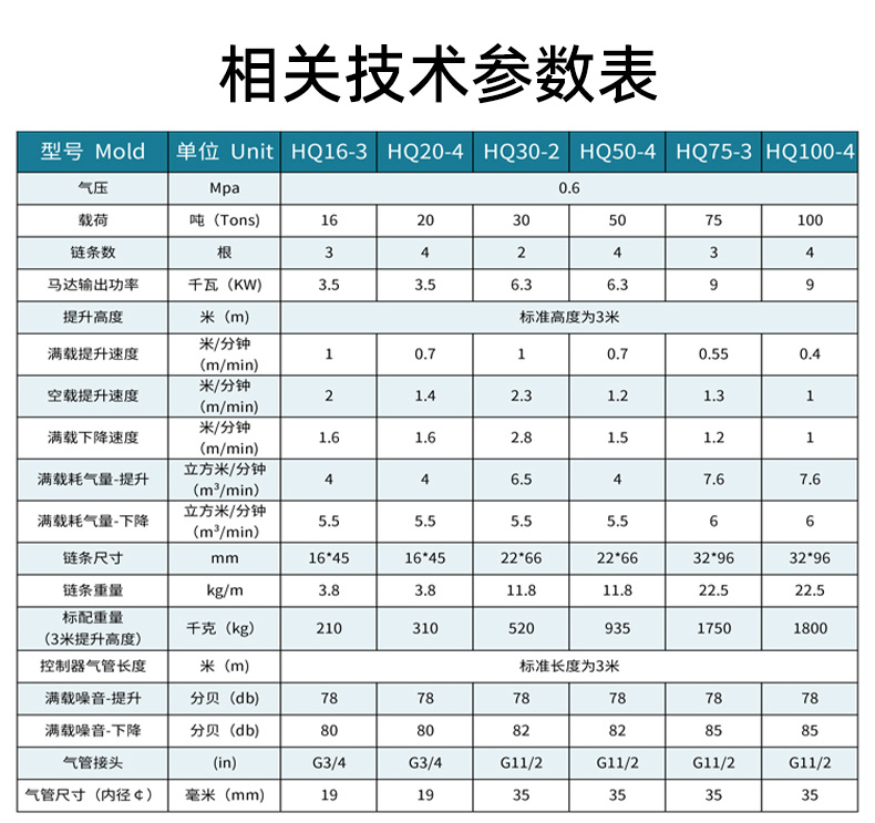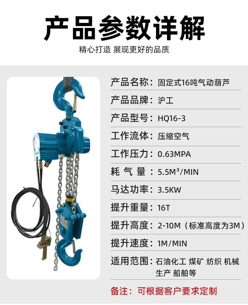 7.經久耐用,零件設計精細,氣動葫蘆使用壽命比傳統葫蘆使用壽命長