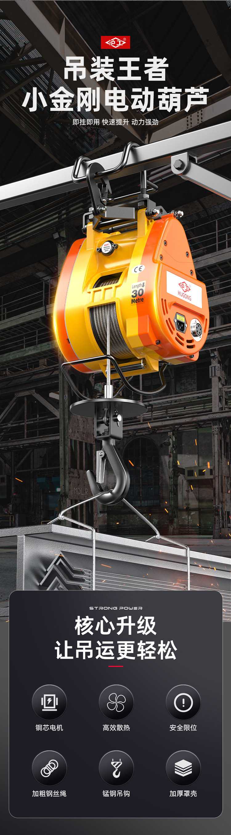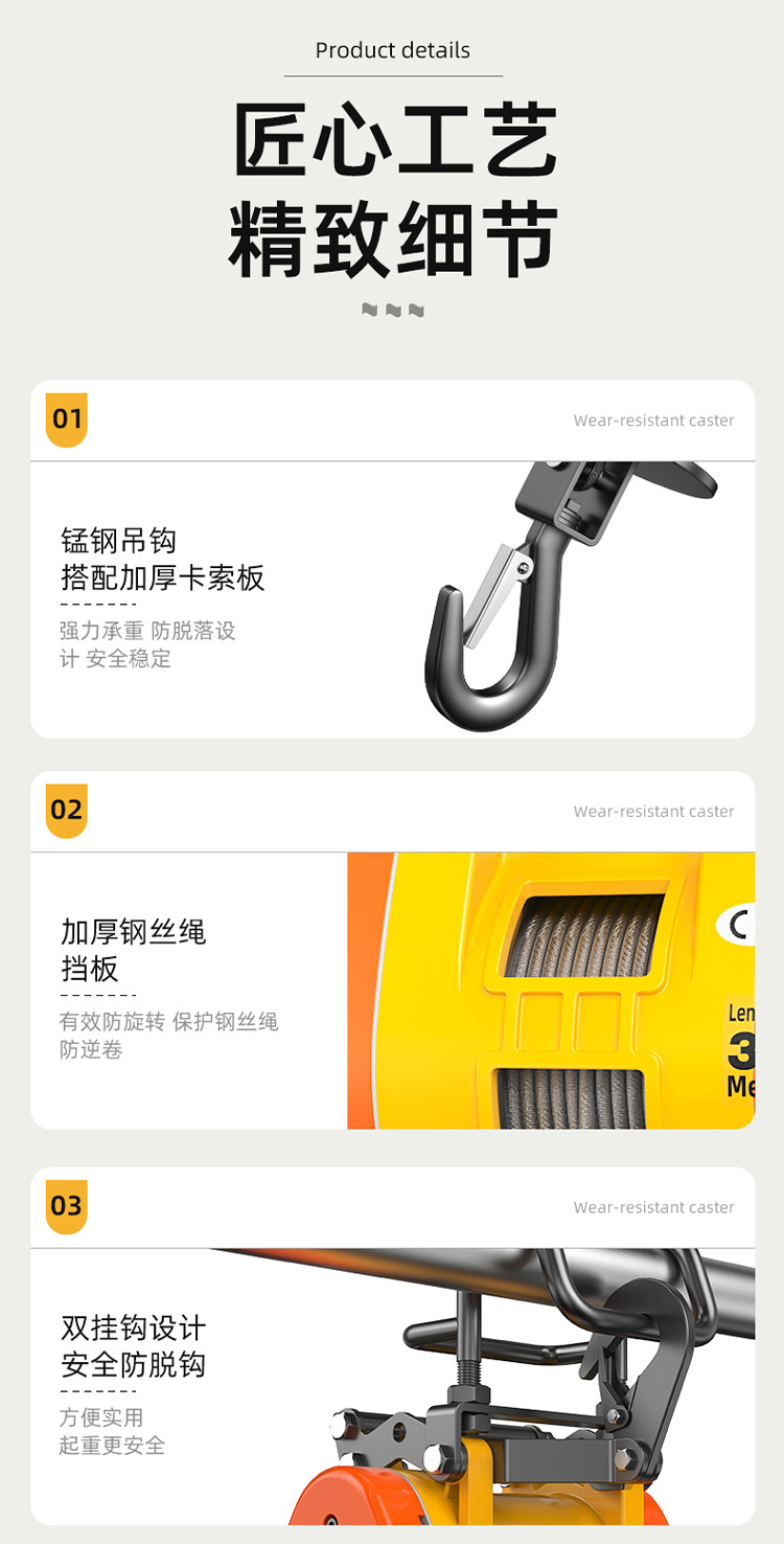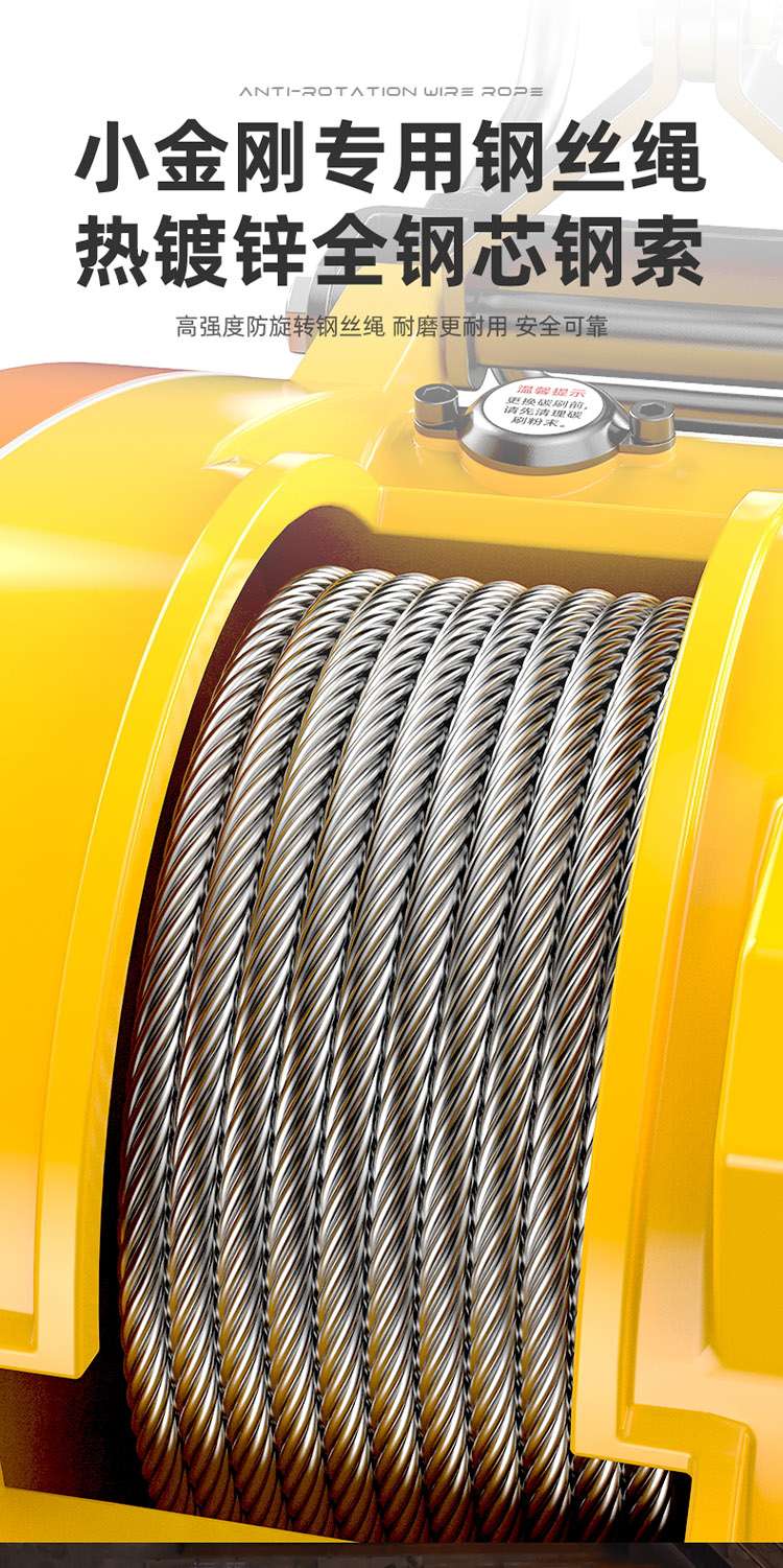 ● 高強度防旋轉(zhuǎn)鋼絲繩,耐磨更耐用,安全可靠;