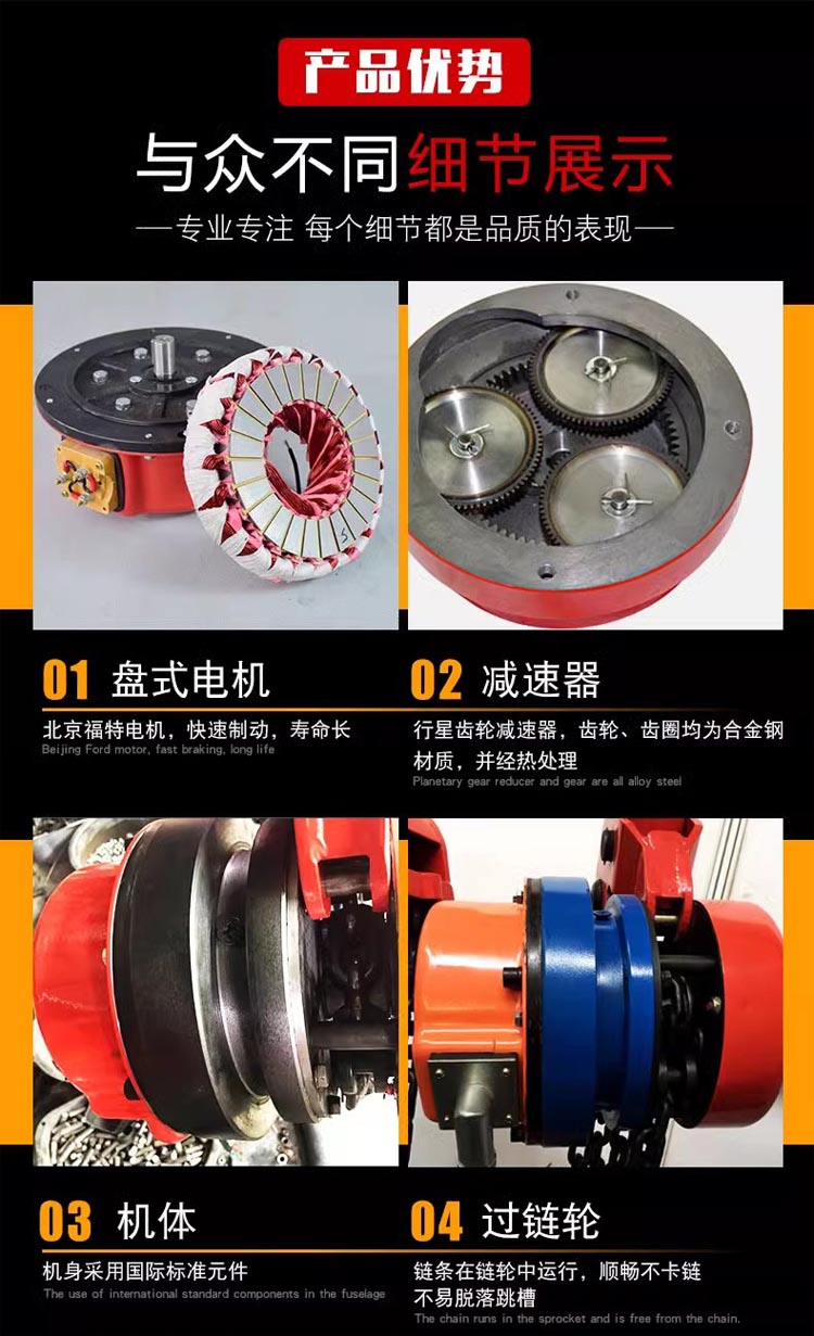 保留了手拉葫蘆輕巧方便的特點,又改進了手拉葫蘆人工操作、提升速度慢等不足,它集電動和手拉葫蘆的優點于一身,采用盤式制動、行星減速器減速、具有結構緊湊、效率高、制動可靠等特點。