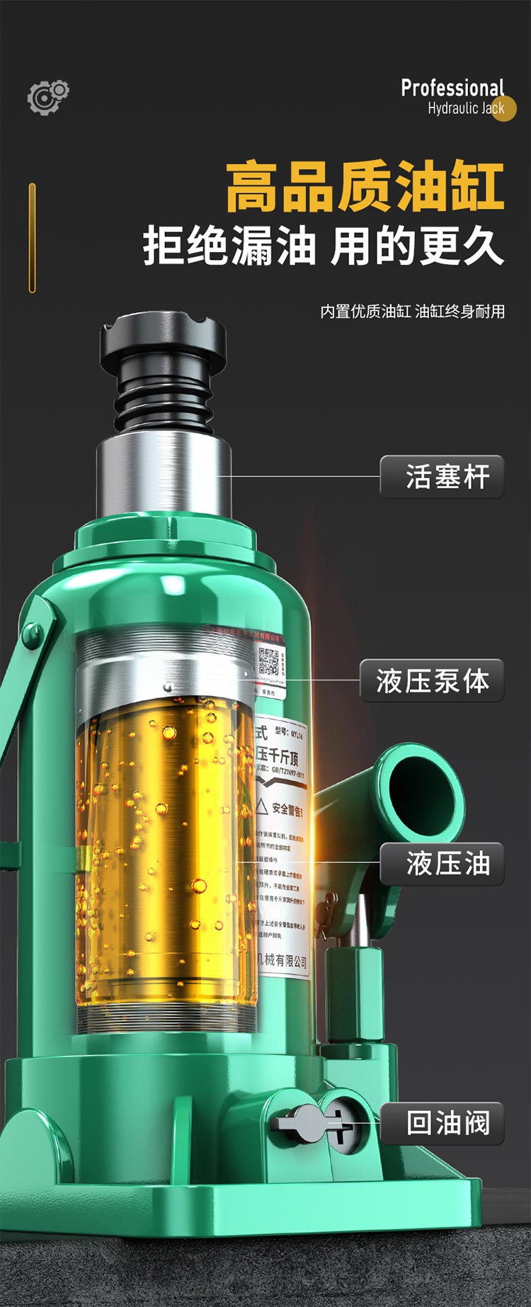液壓千斤頂,液壓活塞桿光滑耐用承重力強,千斤頂泵體表面噴塑處理美觀耐腐蝕。